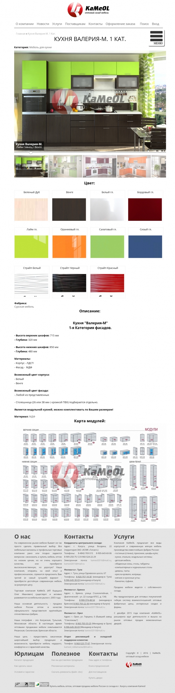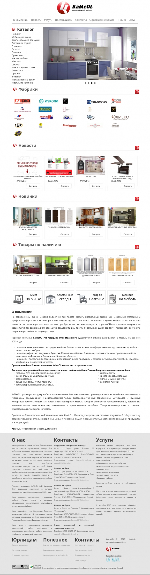 Компания «Сайт Брянск» создала сайт для крупной оптовой мебельной компании KaMeOL (Калуга-Брянск).