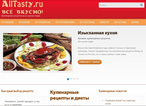 Сайт кулинарных рецептов, полезных советов по домашнему хозяйству и кулинарных новостей.